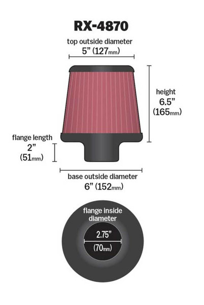 K&N Filter Universal X Stream Clamp-On 2 3/4 inch Flange 6 inch Base 5 inch Top 6 1/2 inch Height - RX-4870