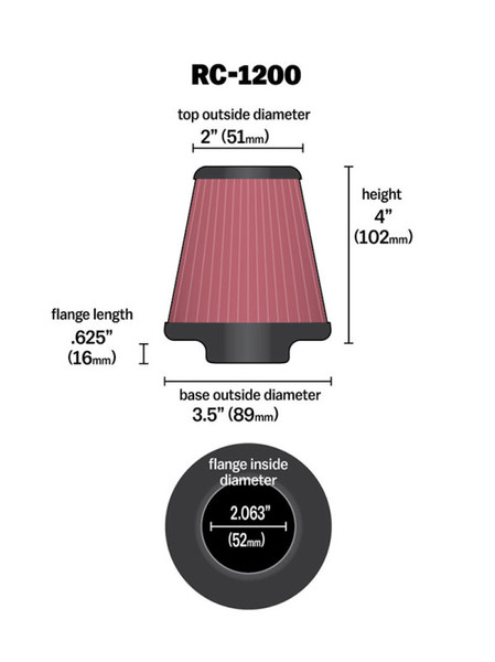 K&N Universal Chrome Filter 2.063in Flange ID x 3.5in Base OD x 2in Top OD x 4in H - RC-1200