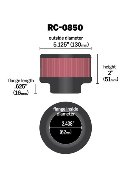 K&N Universal Chrome Filter 2.063in Flange ID x 3.5in Base OD x 2in Top OD x 4in H - RC-1200