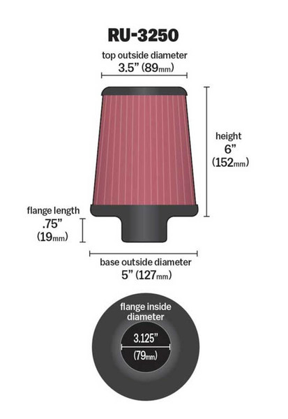 K&N Universal Tapered Filter 6in Flange ID x 7.5in Base OD x 5in Top OD x 5in Height - RU-2960XD