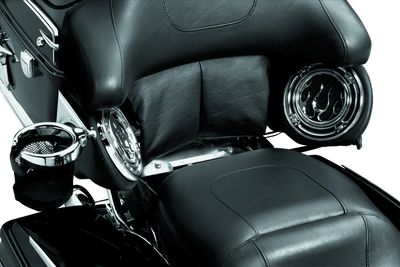 Adjust the Tour-Pak from 1 in. forward to 3 in. back from the stock position with a tool-free slider and latch system. Features interlocking aluminum support plates, chrome locking levers, a chrome rear accent panel and an extended-length vinyl pad/wiring cover for the front of the Tour-Pak.