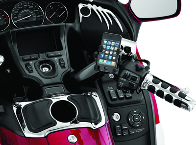 quick view Add to Cart Kuryakyn Kuryakyn Standard Accessory Perch Mount Black - 1672 MSRP: $66.99 Easily mount and secure an iPhone®, iPod®, smartphone, GPS or small device to your handlebars. An adjustable swivel head allows movement for perfect positioning and disconnects in seconds.