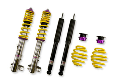 Designed to maximize the performance on vehicles with DOT-R and other ultra high-performance tire setups. KW V3 Clubsport coilovers are the ideal choice for double-duty street cars, use at HPDE's(high performance drivers education), time attack or time trials, and club level racing. The Clubsport setup was specially designed on the Nordschleife and the continuous adjustable ride height allows for fine corner weight or making setup changes. The TVR-A and TVC-A valve technology -provide an unmatched level of separately adjustable damping for the rebound and compression enabling a customized set up appropriate for the vehicle's modifications such as weight, tire characteristics, and other various conditions. The KW V3 Clubsport INOX-LINE coilover kit is the ideal tool for performance-oriented drivers and experienced tuning enthusiasts who place a strong emphasis on the overall performance of their suspension. The KW V3 Clubsport features patented TVR-A and TVC-A technology -hat provides separately adjustable rebound and compression damping. The extensive Adjustment -angle of the independently configurable rebound and compression make it easy to directly influence the steering behavior, directional stability, grip and handling characteristics for confident and repeatable results at the limit of driving dynamics.