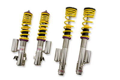 The KW V1 INOX-LINE coilover kit is our entry point into our street performance lineup. The high-quality INOX-LINE stainless steel coilover struts, corrosion resistant springs, bumps stops and dampers that are optimally tuned by our engineers the result is a balanced and sporty feel specific to each vehicle application designed for long lasting driving pleasure. With KW V1 coilovers you can achieve maximum lowering within an approved lowering range that ensures a proper functioning suspension and adequate travel after your car is lowered. Even after years of use you can easily adjust the ride height thanks to the dirt resistant trapezoid thread and composite adjustment collar. KW INOX-LINE coilover rewards the sporty driver with its harmonious pre-configured setup. For each vehicle our engineers develop a specific damper setup and spring rate to increase the driving pleasure with an optimal balance of sportiness and practicality. As with all KW coilovers, the engineers at KW develop the vehicle-specific KW damper tuning and spring rates with comprehensive testing on the N?rburgring Nordschleife and in the KW 7-post chassis dynamics test center. Unlike a mass produced, generic coilover kit, KW coilovers are developed specifically for your vehicle. As a manufacturer, KW uses only its own resources, high quality components and the damper technology that was all developed in-house. With the KW V1 coilovers, body roll will be reduced during compression giving you the benefit of a more genuine and direct sporty handling while driving.