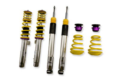 The KW V1 INOX-LINE coilover kit is our entry point into our street performance lineup. The high-quality INOX-LINE stainless steel coilover struts, corrosion resistant springs, bumps stops and dampers that are optimally tuned by our engineers the result is a balanced and sporty feel specific to each vehicle application designed for long lasting driving pleasure. With KW V1 coilovers you can achieve maximum lowering within an approved lowering range that ensures a proper functioning suspension and adequate travel after your car is lowered. Even after years of use you can easily adjust the ride height thanks to the dirt resistant trapezoid thread and composite adjustment collar. KW INOX-LINE coilover rewards the sporty driver with its harmonious pre-configured setup. For each vehicle our engineers develop a specific damper setup and spring rate to increase the driving pleasure with an optimal balance of sportiness and practicality. As with all KW coilovers, the engineers at KW develop the vehicle-specific KW damper tuning and spring rates with comprehensive testing on the N?rburgring Nordschleife and in the KW 7-post chassis dynamics test center. Unlike a mass produced, generic coilover kit, KW coilovers are developed specifically for your vehicle. As a manufacturer, KW uses only its own resources, high quality components and the damper technology that was all developed in-house. With the KW V1 coilovers, body roll will be reduced during compression giving you the benefit of a more genuine and direct sporty handling while driving.