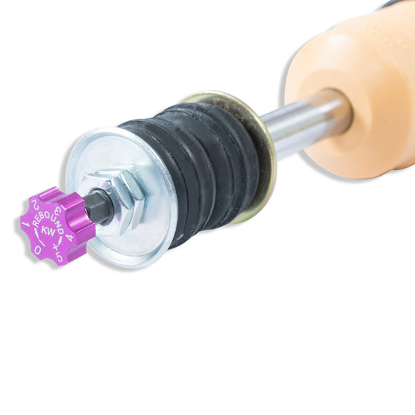 KW V2 INOX-LINE coilovers are the perfect solution for drivers who want more than just outstanding looks and adjustable ride height. In addition to stainless steel coilover struts, and corrosion-resistant components built for long term durability, KW V2 coilovers utilize TVR-A (Twin Valve Rebound - Adjustable) technology that allow Adjustment of the rebound damping characteristics with 16 clicks so you can fine tune the ride comfort or performance to your satisfaction. As with all KW coilovers our engineers develop vehicle specific damper settings that undergo comprehensive testing on the Nurburgring Nordschleife and in our KW 7-post Driving Dynamic Test Center. With a KW coilover kit the driving experience is more dynamic and direct. With the rebound adjustability you have a more direct influence on the handling or comfort of the car. With 16 precise clicks you can adjust the KW dampers (more firm or more comfortable) without affecting the compression damping fine-tuned by our engineers. The two-stage, patented TVR-A (Twin Valve Rebound - Adjustable) technology enables a small volume of oil flow through an adjustable, conically shaped, low-speed bypass during low damper speeds, while at high damper speeds, the main rebound stage valve opens allowing a larger volume of oil to flow. This provides a big improvement in terms of ride comfort without influencing the high-speed range. There are 16 precise clicks available for individual settings, so you can choose between more comfort or more body control. With KW V2 coilovers you can achieve maximum lowering within an approved lowering range that ensures a proper functioning suspension and adequate travel after your car is lowered. Even after years of use you can easily adjust the ride height thanks to the dirt resistant trapezoid thread and composite adjustment collar.