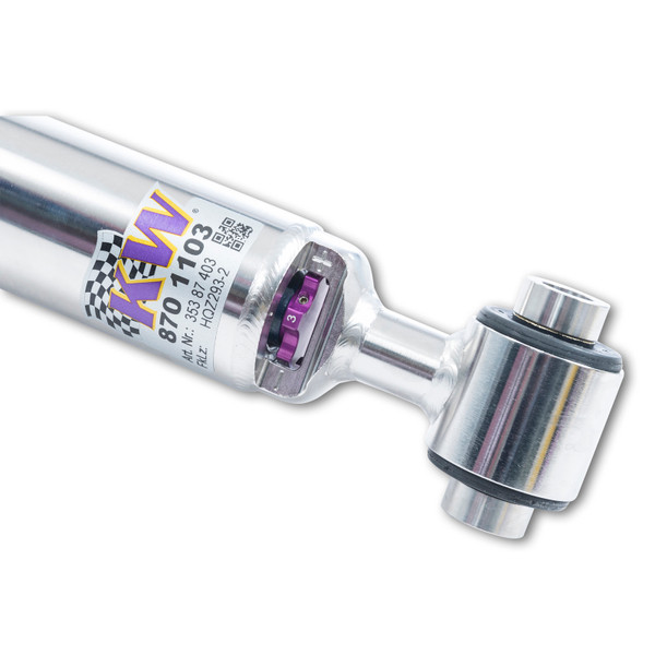 Cutting-edge motorsports technology for more performance on the road. Like every suspension product developed by KW automotive, the suspension manufacturer, and manufactured in Germany, the KW V3 Coilover suspension kit also provides a significant plus in safety reserves in road traffic. Thanks to the chassis with its high-quality dampers, springs, and elastomer spring elements, pitching and rolling movements during load changes such as evasive maneuvers, cornering, acceleration, and braking are significantly reduced. The braking distances are also shortened. Thanks to improved support and feedback, drivers not only feel safer but driving in everyday life becomes even safer. With compression and rebound stage damping, that can be set separately and independently of each other, the damper setup can be customized to your personal driving preferences or vehicle changes such as weight, tire characteristics, or altered vehicle rigidity. True performance optimization is only possible with this unique, patented system. For example, this allows the compression damping force to be increased and get more grip from the tires, to improve cornering behavior and reduce squat without simultaneously altering the rebound stage damping which is optimally matched to the spring rate, a scenario which results in reduced grip and the associated loss of performance. The KW V3 coilover kit is the ideal tool for performance-oriented drivers and experienced tuning enthusiasts who place a strong emphasis on the overall performance of their suspension. The Variant 3 features patented TVR-A and TVC-A technology that provides separately adjustable rebound and compression damping. The extensive adjustment range of the independently configurable rebound and compression make it easy to directly influence the steering behavior, directional stability, grip and handling characteristics for confident and repeatable results at the limit of driving dynamics.