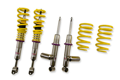 KW V4 coilovers are a combination of our innovative, race proven technology, as well as decades of experience tuning high end sports cars, super sedans and exotics such as the Audi R8, Audi RS6, BMW M5, Lamborghini Aventador LP 750-4 SV, Dodge Charger SRT Hellcat, Mercedes AMG GT and more. In addition to the individually adjustable ride height the KW V4 coilover kit allows an independent Adjustment -f the rebound damping as well as the low-speed and high-speed compression damping. Each KW V4 coilover kit is delivered with a vehicle-specific comfort setting and with the integrated Adjustment -controls the damping characteristics can be set quickly and intuitively transformed to an optimized performance setup. The 3-way adjustable high-performance dampers in the KW V4 coilover kits feature independent Adjustment -f the rebound damping utilizing patented TVR-A technology, as well as the low speed and high speed compression damping utilizing TVCLH-A technology. The KW V4 coilovers are based upon successful race technology utilized by multiple overall winners of the ADAC Zurich 24h Nurburgring race. The new KW V4 coilovers are exclusively developed for select high-performance vehicles, which benefit greatly from the KW suspension technology -o improve their driving dynamics.