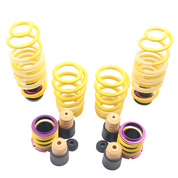 KW (H.A.S) Height Adjustable Spring kits are a great alternative to conventional lowering springs. You are no longer stuck with a fixed lowering height. KW H.A.S. systems allow you to adjust the vehicle ride height with the KW height adjuster even after the kit has been installed. Your vehicle not only gets a more dynamic look, but also the steering behavior and response of the standard dampers becomes more agile. All driver assistance systems and comfort features of a factory adaptive or electronic suspension remain operational and work harmoniously with our vehicle specific spring set up. KW uses high-quality springs made of chrome-silicon steel with spring rates designed specifically for each respective OE suspension damper and wheel load. KW's expertise and engineering ensure the spring rates will pair perfectly with the different damper characteristics of your factory adaptive electronic suspension. Along with the use of high quality materials and the included KW ride height Adjustment - mechanisms, our KW H.A.S. kits always includes the vehicle-specific bump stops with dust protection system to protect your factory suspension against wear & tear caused by road grime and debris. Similar to a coilover suspension, the KW H.A.S kit allow a continuous adjustable ride height within a tested range, something not possible with conventional lowering springs. The dust protection elements and spring perches included in the delivery, when applicable, are always adjusted to the maximum technically possible lowering, typically limited by the factory dampers. With KW height adjustable springs, a sporty and harmonious driving behavior can be achieved without the driving dynamics of performance-oriented vehicles suffering. As with all KW suspension products our engineers develop vehicle specific parameters and spring specifications which undergo comprehensive testing on the Nurburgring Nordschleife and in our KW 7-post Driving Dynamic Test Center.