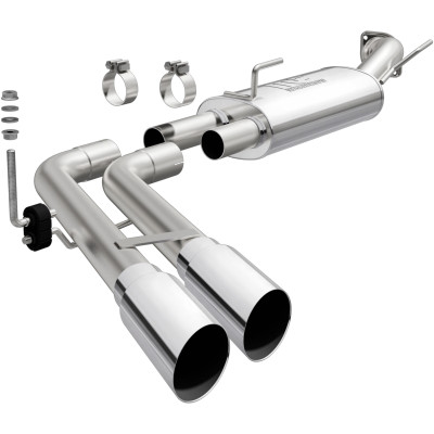 The MagnaFlow Street Series Cat-Back Performance Exhaust System 15249 brings out the personality of your Truck with our signature resonant, powerful engine tone and dyno-proven performance. Thanks to its fast-flowing, mandrel bent 3in. main piping and 1 Straight-Through mufflers ending in a Dual Split Rear exit with 3.5in. Polished Welded-On Single Wall Angle Cut Rolled Edge tips, this Truck exhaust kit has the performance chops to match its sporty sound and appearance. Upgrade your ride to the next level with an exhaust that has the pipes to put other Truck's to shame. With this system your vehicle will be producing Aggressive exterior and Moderate interior sound levels while leaving other cars and trucks feeling envious at every stoplight. Exhaust kit 15249 features a cat-back layout that replaces your ride's stock exhaust components from near the catalytic converter on back. Extensive 3D scanning during development has resulted in a direct-fit design that you can easily install yourself. 15249 is produced using CNC precision robotic manufacturing techniques and is backed by MagnaFlow's 1-year limited finish warranty and limited lifetime construction warranty.