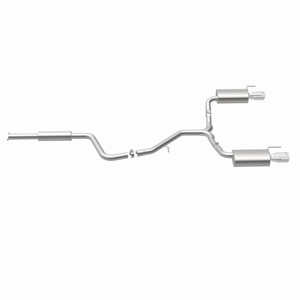 The MagnaFlow 2011-2017 Buick Regal Street Series Cat-Back Performance Exhaust System 15498 brings out the personality of your 2.0L 2011-2017 Buick Regal with our signature resonant, powerful engine tone and dyno-proven performance. Thanks to its fast-flowing, mandrel bent 2.5in. main piping and 3 Straight-Through mufflers ending in a Dual Split Rear exit with 3.5 x 5.5in. Polished Welded-On Double Wall Straight Cut Rolled Edge tips, this Buick Regal exhaust kit has the performance chops to match its sporty sound and appearance. Upgrade your ride to the next level with an exhaust that has the pipes to put other Buick Regal's to shame. With this system your vehicle will be producing Moderate exterior and Mild interior sound levels while leaving other cars and trucks feeling envious at every stoplight. Exhaust kit 15498 features a cat-back layout that replaces your ride's stock exhaust components from near the catalytic converter on back. Extensive 3D scanning during development has resulted in a direct-fit design that you can easily install yourself. 15498 is produced using CNC precision robotic manufacturing techniques and is backed by MagnaFlow's 1-year limited finish warranty and limited lifetime construction warranty.