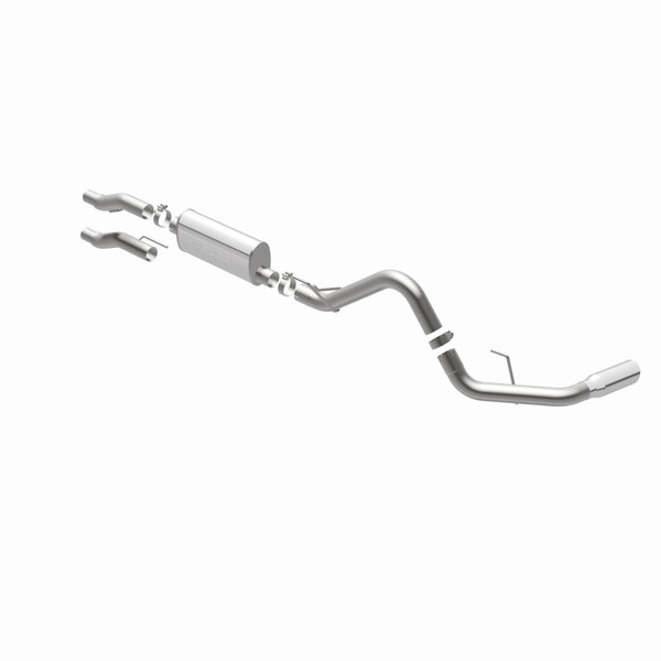 The MagnaFlow 2011-2014 Ford F-150 Street Series Cat-Back Performance Exhaust System 15000 brings out the personality of your 3.7L, 5.0L, 6.2L 2011-2014 Ford F-150 with our signature resonant, powerful engine tone and dyno-proven performance. Thanks to its fast-flowing, mandrel bent 3in. main piping and 1 Straight-Through mufflers ending in a Single Passenger Side Rear exit with 4in. Polished Welded-On Double Wall Angle Cut Rolled Edge tips, this Ford F-150 exhaust kit has the performance chops to match its sporty sound and appearance. Upgrade your ride to the next level with an exhaust that has the pipes to put other Ford F-150's to shame. With this system your vehicle will be producing Moderate exterior and Mild interior sound levels while leaving other cars and trucks feeling envious at every stoplight. Exhaust kit 15000 features a cat-back layout that replaces your ride's stock exhaust components from near the catalytic converter on back. Extensive 3D scanning during development has resulted in a direct-fit design that you can easily install yourself. 15000 is produced using CNC precision robotic manufacturing techniques and is backed by MagnaFlow's 1-year limited finish warranty and limited lifetime construction warranty.