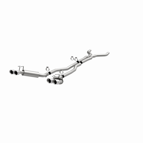 The MagnaFlow 2013-2015 Chevrolet Camaro Street Series Cat-Back Performance Exhaust System 15053 brings out the personality of your 6.2L 2013-2015 Chevrolet Camaro with our signature resonant, powerful engine tone and dyno-proven performance. Thanks to its fast-flowing, mandrel bent 3in. main piping and 2 Straight-Through mufflers ending in a Quad Split Rear exit with 4in. Polished Welded-On Double Wall Angle Cut Folded Edge tips, this Chevrolet Camaro exhaust kit has the performance chops to match its sporty sound and appearance. Upgrade your ride to the next level with an exhaust that has the pipes to put other Chevrolet Camaro's to shame. With this system your vehicle will be producing Moderate exterior and Mild interior sound levels while leaving other cars and trucks feeling envious at every stoplight. Exhaust kit 15053 features a cat-back layout that replaces your ride's stock exhaust components from near the catalytic converter on back. Extensive 3D scanning during development has resulted in a direct-fit design that you can easily install yourself. 15053 is produced using CNC precision robotic manufacturing techniques and is backed by MagnaFlow's 1-year limited finish warranty and limited lifetime construction warranty.