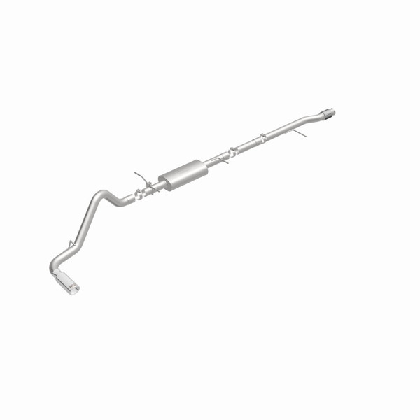 The MagnaFlow Street Series Cat-Back Performance Exhaust System 15267 brings out the personality of your Truck with our signature resonant, powerful engine tone and dyno-proven performance. Thanks to its fast-flowing, mandrel bent 3in. main piping and 1 Straight-Through mufflers ending in a Single Passenger Side Rear exit with 4in. Polished Welded-On Double Wall Angle Cut Rolled Edge tips, this Truck exhaust kit has the performance chops to match its sporty sound and appearance. Upgrade your ride to the next level with an exhaust that has the pipes to put other Truck's to shame. With this system your vehicle will be producing Moderate exterior and Mild interior sound levels while leaving other cars and trucks feeling envious at every stoplight. Exhaust kit 15267 features a cat-back layout that replaces your ride's stock exhaust components from near the catalytic converter on back. Extensive 3D scanning during development has resulted in a direct-fit design that you can easily install yourself. 15267 is produced using CNC precision robotic manufacturing techniques and is backed by MagnaFlow's 1-year limited finish warranty and limited lifetime construction warranty.