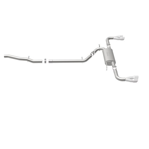 The MagnaFlow 2015-2017 GMC Terrain Street Series Cat-Back Performance Exhaust System 19114 brings out the personality of your 3.6L 2015-2017 GMC Terrain with our signature resonant, powerful engine tone and dyno-proven performance. Thanks to its fast-flowing, mandrel bent 2.5in. main piping and 1 Straight-Through mufflers ending in a Quad Split Rear exit with 3in. Polished Welded-On Double Wall Angle Cut Folded Edge tips, this GMC Terrain exhaust kit has the performance chops to match its sporty sound and appearance. Upgrade your ride to the next level with an exhaust that has the pipes to put other GMC Terrain's to shame. With this system your vehicle will be producing Moderate exterior and Mild interior sound levels while leaving other cars and trucks feeling envious at every stoplight. Exhaust kit 19114 features a cat-back layout that replaces your ride's stock exhaust components from near the catalytic converter on back. Extensive 3D scanning during development has resulted in a direct-fit design that you can easily install yourself. 19114 is produced using CNC precision robotic manufacturing techniques and is backed by MagnaFlow's 1-year limited finish warranty and limited lifetime construction warranty.