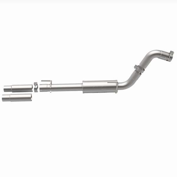 The MagnaFlow Ford F-150 D-Fit Muffler Replacement Kit Performance Exhaust System with Muffler #19572 is compatible with all 2015-2023 Ford F-150s, offering enthusiasts an easy way to upgrade their trucks with the deep signature sound and dyno-proven performance that MagnaFlow exhaust systems are famous for. This easy-to-install bolt-on solution is designed to clamp on to the stock break points and replaces the restrictive factory muffler with a MagnaFlow straight-through muffler while retaining the OEM piping and tailpipe. MagnaFlow #19572 is engineered to produce a moderate level of exterior sound, allowing you to enjoy the deep rumble of your truck’s engine while maintaining mild noise levels in the vehicle’s interior. The exhaust kit utilizes mandrel bent 3†tubing and is produced using CNC precision robotic manufacturing techniques. Each exhaust system features durable 100% stainless steel construction, all backed by a limited lifetime construction warranty.