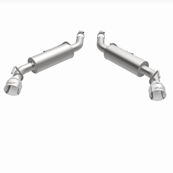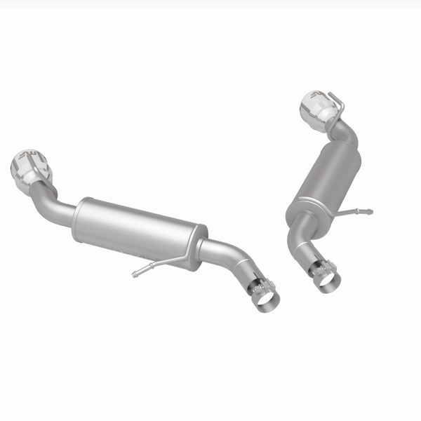 The MagnaFlow 2016-2024 Chevrolet Camaro Competition Series Axle-Back Performance Exhaust System 19332 brings an aggressive, attention-grabbing edge to the deep resonant exhaust note we're so well known for. This exhaust kit is designed to enhance your 3.6L 2016-2024 Chevrolet Camaro with dyno-proven performance made possible thanks to fast-flowing mandrel bent 2.5in. main piping and 2 Straight-Through mufflers ending in a Dual Split Rear exit with 4.5in. Polished Welded-On Double Wall Angle Cut Folded Edge tips featuring a sporty finish. The exhaust system's axle-back layout replaces your ride's exhaust system from near the rear axle on back. Exhaust system 19332 is engineered to make your vehicle's engine produce Aggressive exterior and Moderate interior sound levels, befitting its competition-oriented design. 19332's direct-fit design makes installation a breeze thanks to the use of advanced 3D scanning techniques. This performance exhaust system is made of 100% durable and corrosion-resistant stainless steel and produced using CNC precision robotic manufacturing, all backed by MagnaFlow's limited lifetime warranty. Please check to ensure compliance with local noise regulations.