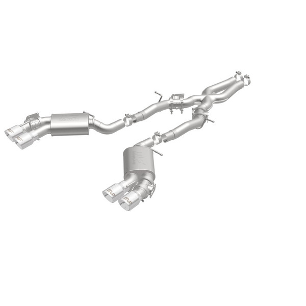 The MagnaFlow 2016-2024 Chevrolet Camaro Competition Series Cat-Back Performance Exhaust System 19265 brings an aggressive, attention-grabbing edge to the deep resonant exhaust note we're so well known for. This exhaust kit is designed to enhance your 6.2L 2016-2024 Chevrolet Camaro with dyno-proven performance made possible thanks to fast-flowing mandrel bent 3in. main piping and 2 Straight-Through mufflers ending in a Quad Split Rear exit with 4in. Polished Welded-On Double Wall Angle Cut Folded Edge tips featuring a sporty finish. The exhaust system's cat-back layout replaces your ride's exhaust system from near the catalytic converter on back. Exhaust system 19265 is engineered to make your vehicle's engine produce Aggressive exterior and Moderate interior sound levels, befitting its competition-oriented design. 19265's direct-fit design makes installation a breeze thanks to the use of advanced 3D scanning techniques. This performance exhaust system is made of 100% durable and corrosion-resistant stainless steel and produced using CNC precision robotic manufacturing, all backed by MagnaFlow's limited lifetime warranty. Please check to ensure compliance with local noise regulations.