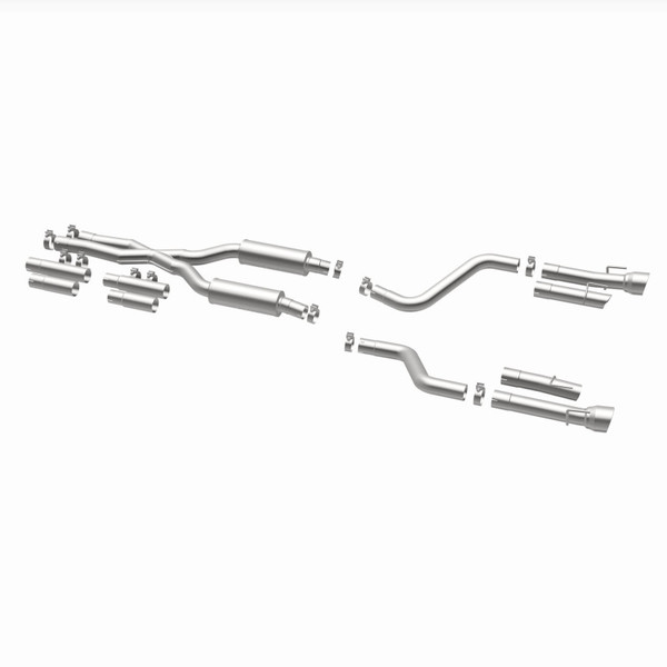 The MagnaFlow 2015-2023 Dodge Charger Competition Series Cat-Back Performance Exhaust System 19371 brings an aggressive, attention-grabbing edge to the deep resonant exhaust note we're so well known for. This exhaust kit is designed to enhance your 5.7L, 6.2L, 6.4L 2015-2023 Dodge Charger with dyno-proven performance made possible thanks to fast-flowing mandrel bent 3in. main piping and 2 Straight-Through mufflers ending in a Dual Split Rear exit with 4.5in. Polished Welded-On Double Wall Angle Cut Folded Edge tips featuring a sporty finish. The exhaust system's cat-back layout replaces your ride's exhaust system from near the catalytic converter on back. Exhaust system 19371 is engineered to make your vehicle's engine produce Aggressive exterior and Moderate interior sound levels, befitting its competition-oriented design. 19371's direct-fit design makes installation a breeze thanks to the use of advanced 3D scanning techniques. This performance exhaust system is made of 100% durable and corrosion-resistant stainless steel and produced using CNC precision robotic manufacturing, all backed by MagnaFlow's limited lifetime warranty. Please check to ensure compliance with local noise regulations.