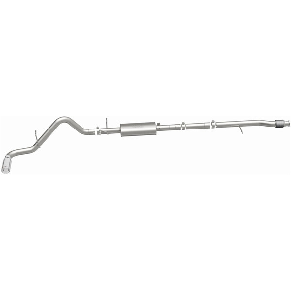 The MagnaFlow Street Series Cat-Back Performance Exhaust System 19469 brings out the personality of your Truck with our signature resonant, powerful engine tone and dyno-proven performance. Thanks to its fast-flowing, mandrel bent 3in. main piping and 1 Straight-Through mufflers ending in a Single Passenger Side Rear exit with 4in. Polished Welded-On Double Wall Angle Cut Rolled Edge tips, this Truck exhaust kit has the performance chops to match its sporty sound and appearance. Upgrade your ride to the next level with an exhaust that has the pipes to put other Truck's to shame. With this system your vehicle will be producing Moderate exterior and Mild interior sound levels while leaving other cars and trucks feeling envious at every stoplight. Exhaust kit 19469 features a cat-back layout that replaces your ride's stock exhaust components from near the catalytic converter on back. Extensive 3D scanning during development has resulted in a direct-fit design that you can easily install yourself. 19469 is produced using CNC precision robotic manufacturing techniques and is backed by MagnaFlow's 1-year limited finish warranty and limited lifetime construction warranty.