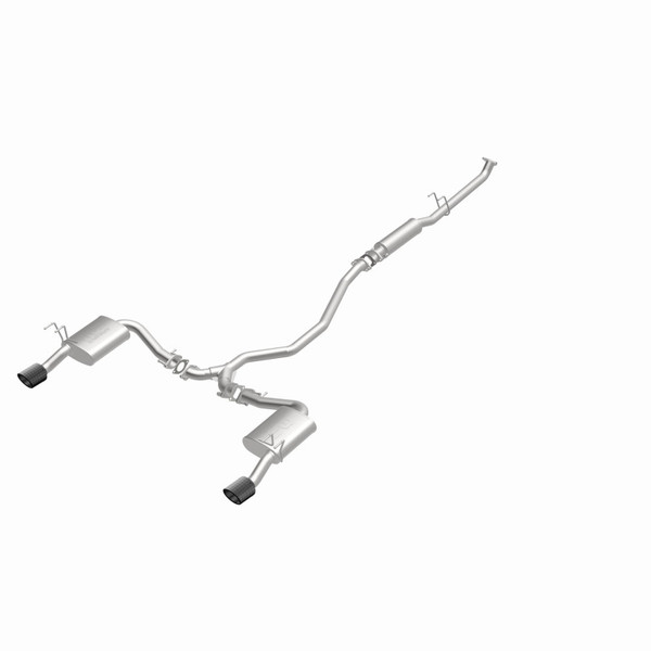 The MagnaFlow Honda Civic NEO Series Cat-Back Performance Exhaust System # 19612 upgrades your 2022-2023 Honda Civic EX or Touring’s 1.5L engine with dyno-proven performance and the latest version of our signature exhaust sound. This performance exhaust kit is designed to replace all your Civic’s OEM exhaust components from near the catalytic converter on back and utilizes an easy to install direct-fit design with all connections flanged. #19612 features 2.25†diameter mandrel bent main piping that passes through a 14†round straight-through performance muffler and two 11†straight-through oval performance mufflers before ending in a dual split rear exit with 4†double-wall angle cut dry carbon fiber tips. Each of these Honda Civic performance exhaust systems is produced using advanced CNC precision robotic manufacturing techniques and made of durable, corrosion resistant stainless steel, all backed by MagnaFlow’s limited lifetime warranty.