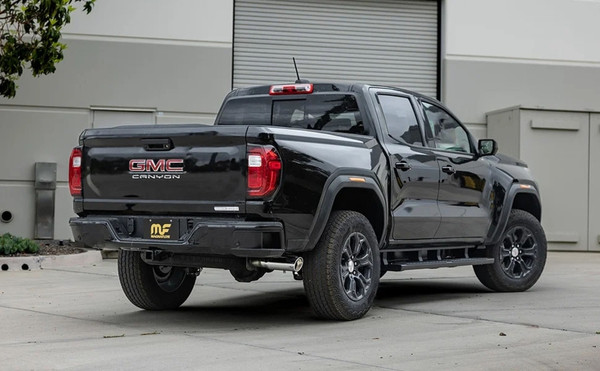 The MagnaFlow 2023 Chevrolet Colorado / GMC Canyon NEO Series Cat-Back Performance Exhaust System 19649 brings out the personality of your Truck with our signature resonant, powerful exhaust tone and dyno-proven performance. Thanks to its fast-flowing, mandrel bent 3in. main piping and 1 straight-through muffler ending in a Single Passenger Side Rear exit with 4in. polished welded-on double wall angle cut rolled edge tips, this mid-size truck exhaust kit has the performance chops to match its sporty sound and appearance. Upgrade your truck to the next level with an exhaust that has the pipes to put other truck's to shame. With this system your truck will be producing moderate exterior and mild interior sound levels while leaving other trucks feeling envious at every stoplight. Exhaust kit 19649 features a cat-back exhaust layout that replaces your trucks stock exhaust components from near the catalytic converter on back. Extensive 3D scanning during development has resulted in a direct-fit design that you can easily install yourself. 19649 is produced using CNC precision robotic manufacturing techniques and is backed by MagnaFlow's 1-year limited finish warranty and limited lifetime construction warranty.