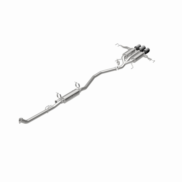 The MagnaFlow Honda Civic Type R SPEQ Series Cat-Back Performance Exhaust System #19708 brings dyno-proven performance and the world’s most advanced exhaust technologies to your 2023-2025 Honda Civic Type R. Exhaust kit #19708 is designed to enhance your sporty compact with improved exhaust flow by replacing your vehicle’s stock exhaust components from near the catalytic converter on back. This Honda Civic Type R exhaust system features 2.5” mandrel bent main piping that passes through a 14” round straight-through muffler module and a smooth Y-pipe transition before continuing on to two 11” round straight-through mufflers and a triple central rear exit with two 4” outer tips and a 4.5” center trip. All tips feature a double-wall, angle-cut rolled edge dry carbon fiber design. Exhaust kit #19708 is produced using advanced CNC precision robotic manufacturing techniques and made of durable, corrosion resistant stainless steel, all backed by MagnaFlow’s limited lifetime construction warranty.