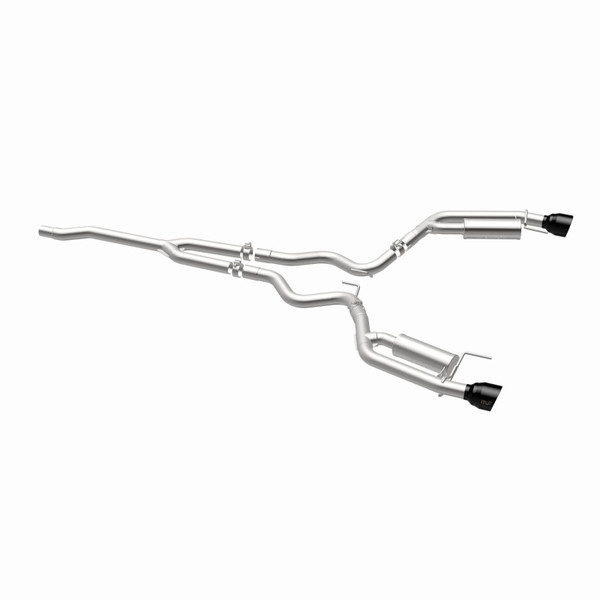 The MagnaFlow 2024 Ford Mustang Ecoboost Competition Series Cat-Back Performance Exhaust System brings an aggressive, attention-grabbing edge to the deep resonant exhaust note we're so well known for. This Ford Mustang cat-back exhaust kit is designed to enhance your 2.3L 2024 Ford Mustang Ecoboost with dyno-proven performance made possible thanks to fast-flowing mandrel bent 2.5in. diameter piping that passes 2 straight-through resonator chambers ending in a dual split rear exit with 4.5in. welded-on double wall angle cut folded edge tips featuring a sporty black chrome finish. The direct-fit design allows for an easy, do-it-yourself installation process. Exhaust system 19639 is engineered to make your Ford Mustang's engine produce moderate interior and aggressive exterior sound levels, befitting its competition-oriented design. 19639 is made of 100% durable and corrosion-resistant stainless steel and produced using CNC precision robotic manufacturing, all backed by MagnaFlow's 1-year limited finish warranty and limited lifetime construction warranty. Please check to ensure compliance with local noise regulations.