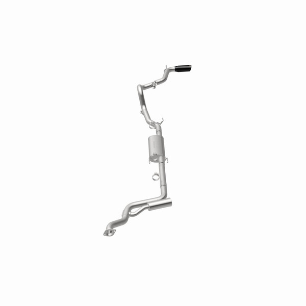 The MagnaFlow 2024 Toyota Tacoma SPEQ Series Cat-Back Performance Exhaust System 19680 brings out the personality of your Truck with our signature resonant, powerful exhaust tone and dyno-proven performance. #19680 3†diameter mandrel bent main piping passes through a No Drone Technology (NDT) chamber and an all-new specifically tuned performance oval muffler before exiting in a single driver side rear exit with a 4†black chrome welded-on double wall angle cut rolled edge tip. This mid-size truck exhaust kit is the perfect equalizer between sound and performance. Upgrade your truck to the next level with an exhaust that has the pipes to put other trucks to shame. With this system your truck will be producing moderate exterior and mild interior sound levels while leaving other trucks feeling envious at every stoplight. Exhaust kit 19680 features a cat-back exhaust layout that replaces your trucks stock exhaust components from near the catalytic converter on back. Extensive 3D scanning during development has resulted in a direct-fit design that you can easily install yourself. 19680 is produced using CNC precision robotic manufacturing techniques and is backed by MagnaFlow's 1-year limited finish warranty and limited lifetime construction warranty.