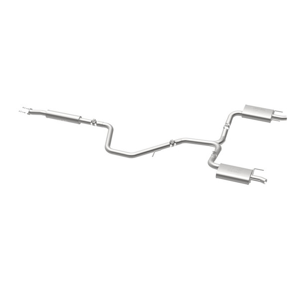 The MagnaFlow 2014-2020 Chevrolet Impala Street Series Cat-Back Performance Exhaust System 19023 brings out the personality of your 3.6L 2014-2020 Chevrolet Impala with our signature resonant, powerful engine tone and dyno-proven performance. Thanks to its fast-flowing, mandrel bent 2.5in. main piping and 3 Straight-Through mufflers ending in a Dual Split Rear exit, this Chevrolet Impala exhaust kit has the performance chops to match its sporty sound and appearance. Upgrade your ride to the next level with an exhaust that has the pipes to put other Chevrolet Impala's to shame. With this system your vehicle will be producing Moderate exterior and Mild interior sound levels while leaving other cars and trucks feeling envious at every stoplight. Exhaust kit 19023 features a cat-back layout that replaces your ride's stock exhaust components from near the catalytic converter on back. Extensive 3D scanning during development has resulted in a direct-fit design that you can easily install yourself. 19023 is produced using CNC precision robotic manufacturing techniques and is backed by MagnaFlow's 1-year limited finish warranty and limited lifetime construction warranty.