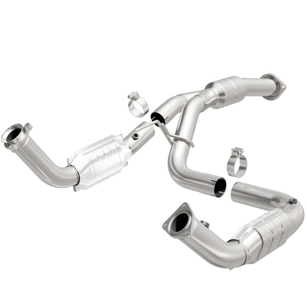 Keep the check engine light off with MagnaFlow OEM Grade Federal/EPA Compliant Direct-Fit Catalytic Converter 51812. With features including free-flowing mandrel-bent tubing and highly corrosion resistant stainless steel construction, easily install this spun body converter yourself using the proper tools, no cutting or welding required. MagnaFlow's state-of-the-art metrology department uses the latest 3D scanning systems during research and development, so you can be confident that your new part will fit and function like the original equipment. By replicating the OE spun body design, the single laser fusion weld greatly reduces the possibility of a leak, and our compact, low-mass design also allows for greater thermal efficiency. Designed to fit the 2011-2019 Chevrolet Silverado 2500 HD, 2011-2019 GMC Sierra 2500 HD, and more, this direct-fit catalytic converter also interchanges with OE part 23424746. Hardware is included to eliminate the hassle of working with corroded factory parts. This replacement part is designed to meet or exceed Federal emissions requirements set forth by the EPA, complying with legal standards for OBDII Federally registered vehicles with California or Federal/EPA Emission systems.