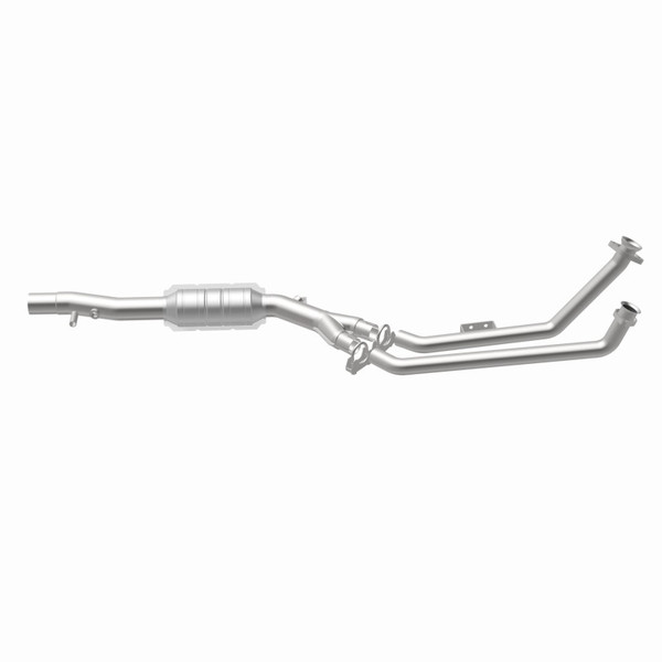 Keep the check engine light off with MagnaFlow HM Grade Federal/EPA Compliant Direct-Fit Catalytic Converter 24015. With features including free-flowing mandrel-bent tubing and highly corrosion resistant stainless steel construction, easily install this spun body converter yourself using the proper tools, no cutting or welding required. MagnaFlow's state-of-the-art metrology department uses the latest 3D scanning systems during research and development, so you can be confident that your new part will fit and function like the original equipment. By replicating the OE spun body design, the single laser fusion weld greatly reduces the possibility of a leak, and our compact, low-mass design also allows for greater thermal efficiency. This direct-fit catalytic converter is designed specifically for the 1995-2002 Mercedes-Benz SL600 and interchanges with OE parts 129 490 72 19 80 and 129 490 72 19. Hardware is included to eliminate the hassle of working with corroded factory parts. This replacement part is designed to meet or exceed Federal emissions requirements set forth by the EPA, complying with legal standards for OBDII Federally registered vehicles with Federal/EPA Emission systems.