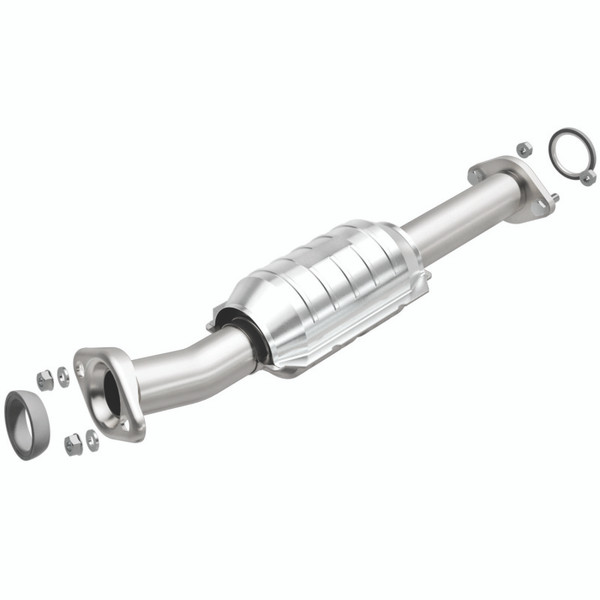 Keep the check engine light off with MagnaFlow HM Grade Federal/EPA Compliant Direct-Fit Catalytic Converter 24366. With features including free-flowing mandrel-bent tubing and highly corrosion resistant stainless steel construction, easily install this spun body converter yourself using the proper tools, no cutting or welding required. MagnaFlow's state-of-the-art metrology department uses the latest 3D scanning systems during research and development, so you can be confident that your new part will fit and function like the original equipment. By replicating the OE spun body design, the single laser fusion weld greatly reduces the possibility of a leak, and our compact, low-mass design also allows for greater thermal efficiency. This direct-fit catalytic converter is designed specifically for the 2002 Suzuki Aerio and interchanges with OE part 14250-54G30. The included gaskets & hardware reduce the possibility of a leaking seal while avoiding the need to reuse corroded factory parts for installation. This replacement part is designed to meet or exceed Federal emissions requirements set forth by the EPA, complying with legal standards for OBDII Federally registered vehicles with Federal/EPA Emission systems.