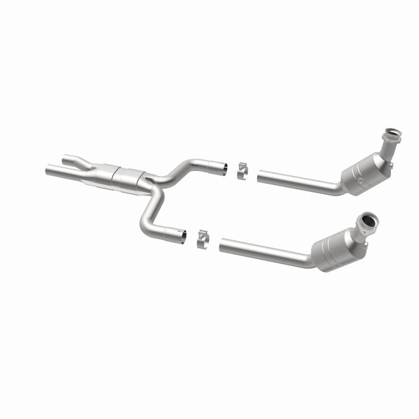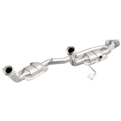 Keep the check engine light off with MagnaFlow OEM Grade Federal/EPA Compliant Direct-Fit Catalytic Converter 52099. With features including free-flowing mandrel-bent tubing and highly corrosion resistant stainless steel construction, easily install this spun body converter yourself using the proper tools, no cutting or welding required. MagnaFlow's state-of-the-art metrology department uses the latest 3D scanning systems during research and development, so you can be confident that your new part will fit and function like the original equipment. By replicating the OE spun body design, the single laser fusion weld greatly reduces the possibility of a leak, and our compact, low-mass design also allows for greater thermal efficiency. Designed to fit the 2003-2004 Ford Thunderbird and 2003-2004 Lincoln LS, this direct-fit catalytic converter also interchanges with OE parts 3W6Z-5F250-AA and 4W4Z-5E212-AA, among others. Hardware is included to eliminate the hassle of working with corroded factory parts. This replacement part is designed to meet or exceed Federal emissions requirements set forth by the EPA, complying with legal standards for OBDII Federally registered vehicles with California or Federal/EPA Emission systems.