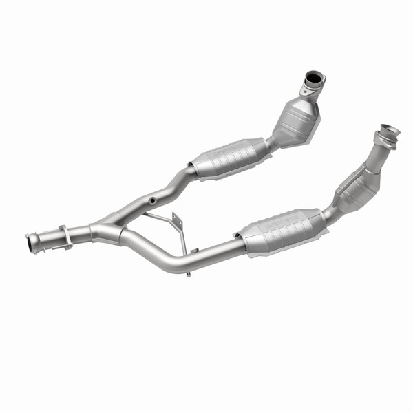 MagnaFlow HM Grade Federal/EPA Compliant Direct-Fit Catalytic Converter 93344 helps keep the check engine light off. DIY installation is easy with the proper tools (no cutting or welding required). With features including mandrel-bent tubing to eliminate flow restrictions and stainless steel construction to resist corrosion, you can have confidence in the quality of this catalytic converter. Using state-of-the-art 3D scanning systems in the design process, the MagnaFlow metrology department ensures this new part to fit and function like the original equipment. This direct-fit catalytic converter is designed specifically for the 1996-1998 Ford Mustang and interchanges with OE parts F6ZZ-5F250-UA and F8ZZ-5F250-AA. Hardware is included to eliminate the hassle of working with corroded factory parts. This replacement part is designed to meet or exceed Federal emissions requirements set forth by the EPA, complying with legal standards for OBDII Federally registered vehicles with Federal/EPA Emission systems.