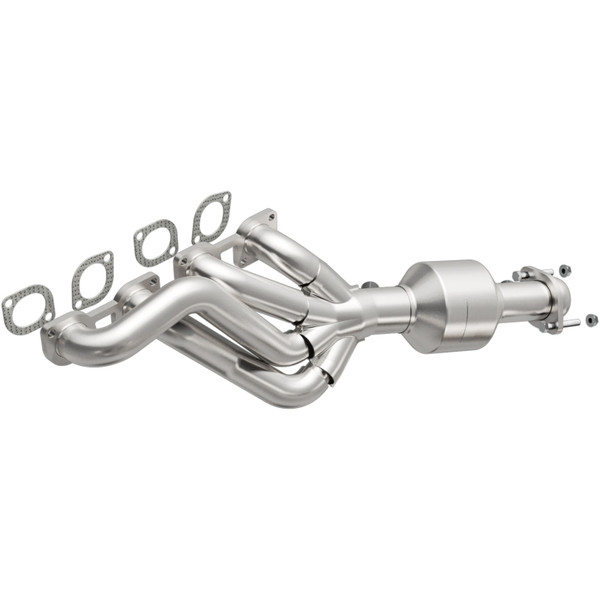 Keep the check engine light off with MagnaFlow HM Grade Federal/EPA Compliant Direct-Fit Catalytic Converter 50400. With features including free-flowing mandrel-bent tubing and highly corrosion resistant stainless steel construction, easily install this spun body converter yourself using the proper tools, no cutting or welding required. MagnaFlow's state-of-the-art metrology department uses the latest 3D scanning systems during research and development, so you can be confident that your new part will fit and function like the original equipment. By replicating the OE spun body design, the single laser fusion weld greatly reduces the possibility of a leak, and our compact, low-mass design also allows for greater thermal efficiency. Designed to fit the 2004-2005 BMW 645Ci, 2004-2005 BMW 545i, and more, this direct-fit catalytic converter also interchanges with OE parts 18 40 7 522 555 and 18 40 7 522 571. The included gaskets & hardware reduce the possibility of a leaking seal while avoiding the need to reuse corroded factory parts for installation. This replacement part is designed to meet or exceed Federal emissions requirements set forth by the EPA, complying with legal standards for OBDII Federally registered vehicles with Federal/EPA Emission systems.