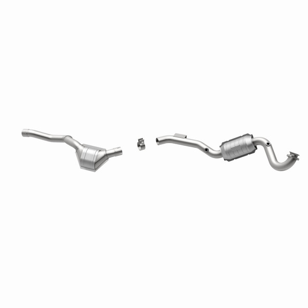 Keep the check engine light off with MagnaFlow OEM Grade Federal/EPA Compliant Direct-Fit Catalytic Converter 49868. With features including free-flowing mandrel-bent tubing and highly corrosion resistant stainless steel construction, easily install this spun body converter yourself using the proper tools, no cutting or welding required. MagnaFlow's state-of-the-art metrology department uses the latest 3D scanning systems during research and development, so you can be confident that your new part will fit and function like the original equipment. By replicating the OE spun body design, the single laser fusion weld greatly reduces the possibility of a leak, and our compact, low-mass design also allows for greater thermal efficiency. This direct-fit catalytic converter is designed specifically for the 1999-2001 Mercedes-Benz ML430 and interchanges with OE parts 163 490 12 36 and 163 490 14 14, among others. Hardware is included to eliminate the hassle of working with corroded factory parts. This replacement part is designed to meet or exceed Federal emissions requirements set forth by the EPA, complying with legal standards for OBDII Federally registered vehicles with California or Federal/EPA Emission systems.