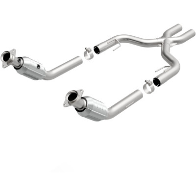 Keep the check engine light off with MagnaFlow Direct-Fit Catalytic Converter 15448. With features including free-flowing mandrel-bent tubing and highly corrosion resistant stainless steel construction, easily install this spun body converter yourself using the proper tools, no cutting or welding required. MagnaFlow's state-of-the-art metrology department uses the latest 3D scanning systems during research and development, so you can be confident that your new part will fit and function like the original equipment. By replicating the OE spun body design, the single laser fusion weld greatly reduces the possibility of a leak, and our compact, low-mass design also allows for greater thermal efficiency. This direct-fit catalytic converter is designed specifically for the 2005-2009 Ford Mustang and interchanges with OE parts AR3Z-5F250-A and 7R3Z-5F250-A, among others. Hardware is included to eliminate the hassle of working with corroded factory parts.