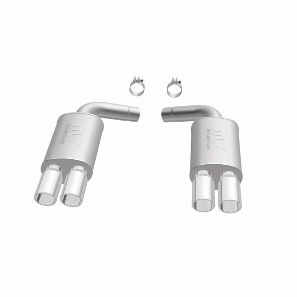 The MagnaFlow 1992-1996 Chevrolet Corvette Street Series Axle-Back Performance Exhaust System 15623 brings enhanced engine sound and dyno-proven performance to your 5.7L 1992-1996 Chevrolet Corvette with a healthy helping of our deep, resonant signature exhaust note at Moderate exterior and Mild interior sound levels. Thanks to its durable, corrosion resistant stainless steel design, this Chevrolet Corvette exhaust system will handle whatever tarmac you decide to leave your mark on. This performance exhaust kit features an axle-back layout designed to replace your Chevrolet Corvette's exhaust system from near the rear axle on back. With its fast-flowing, mandrel bent 3in. main piping and 2 Straight-Through mufflers ending in a Quad Split Rear exit with 3.5in. Polished Welded-On Single Wall Angle Cut Rolled Edge tips, your ride will be sounding as awesome as it looks. Extensive 3D scanning during development has resulted in a direct-fit design that you can easily install yourself. 15623 is produced using CNC precision robotic manufacturing techniques and is backed by MagnaFlow's 1-year limited finish warranty and limited lifetime construction warranty.