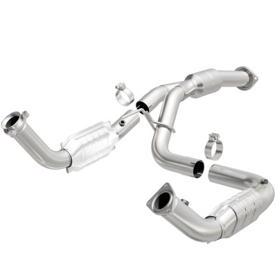 Keep the check engine light off with MagnaFlow OEM Grade Federal/EPA Compliant Direct-Fit Catalytic Converter 60504. With features including free-flowing mandrel-bent tubing and highly corrosion resistant stainless steel construction, easily install this spun body converter yourself using the proper tools, no cutting or welding required. MagnaFlow's state-of-the-art metrology department uses the latest 3D scanning systems during research and development, so you can be confident that your new part will fit and function like the original equipment. By replicating the OE spun body design, the single laser fusion weld greatly reduces the possibility of a leak, and our compact, low-mass design also allows for greater thermal efficiency. This direct-fit catalytic converter is designed to fit the 2007-2010 Chevrolet Silverado 2500 HD, 2007-2010 GMC Sierra 2500 HD, and additional vehicles. The included gaskets & hardware reduce the possibility of a leaking seal while avoiding the need to reuse corroded factory parts for installation. This replacement part is designed to meet or exceed Federal emissions requirements set forth by the EPA, complying with legal standards for OBDII Federally registered vehicles with California or Federal/EPA Emission systems.