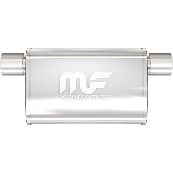 The MagnaFlow 4 X 9in. Oval Straight-Through Performance Exhaust Muffler 11375 is engineered to enhance your ride with a healthy helping of our signature exhaust sound and dyno-proven performance thanks to its free-flowing straight-through perforated stainless steel core wrapped in stainless steel mesh and acoustic fiber fill. The reversible, universal 2.25/2.25in. diameter inlet/outlet Straight-Through layout allows you to install it in whatever orientation and configuration you see fit. However, professional installation is highly recommended. Muffler 11375s weight-optimized 4x9x11in. oval-shaped body features a satin finish that elevates the overall aesthetics of your current exhaust setup. 11375 is made of durable, corrosion resistant stainless steel and produced using cutting-edge CNC precision robotic manufacturing techniques, all backed by MagnaFlow's limited lifetime construction warranty.