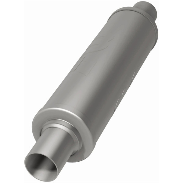 The MagnaFlow 4in. Round Straight-Through Performance Exhaust Muffler 10414 brings our world-famous exhaust sound and dyno-proven performance to your ride in a weight-optimized 4x4x14in. package with a premium satin finish. The straight-through free-flowing design of this round-bodied muffler's reversible, universal 2/2in. diameter inlet/outlet layout enables versatile installation options to match the spacing requirements of your vehicle. Due to the cutting and welding involved, professional installation is highly recommended. Internally, 10414 utilizes a perforated stainless steel core wrapped in stainless steel mesh and acoustic fiber fill to achieve a powerful, resonant tone. This muffler is made of durable, corrosion resistant stainless steel and produced using cutting-edge CNC precision robotic manufacturing techniques, all backed by MagnaFlow's limited lifetime construction warranty.