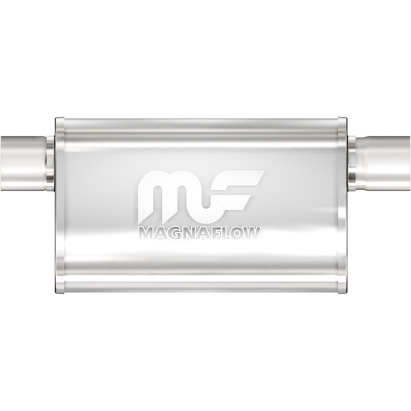 The MagnaFlow 5 X 8in. Oval Straight-Through Performance Exhaust Muffler 14211 brings our signature sound and dyno-proven performance to your ride with a free-flowing straight-through perforated stainless steel core wrapped in stainless steel mesh and acoustic fiber fill, and a weight-optimized, reversible 2.5/2.5in. diameter inlet/outlet Straight-Through layout. Muffler 14211s 5x8x14in. oval-shaped body features a premium, brushed finish for an elevated aesthetic that matches the enhanced exhaust note and performance that this muffler brings to your ride. The universal design allows for flexible placement of 14211 within your exhaust system to meet the specific spacing requirements of your vehicle, although professional installation is highly recommended. 14211 is made of durable, corrosion resistant stainless steel and produced using cutting-edge CNC precision robotic manufacturing techniques, all backed by MagnaFlow's limited lifetime construction warranty.