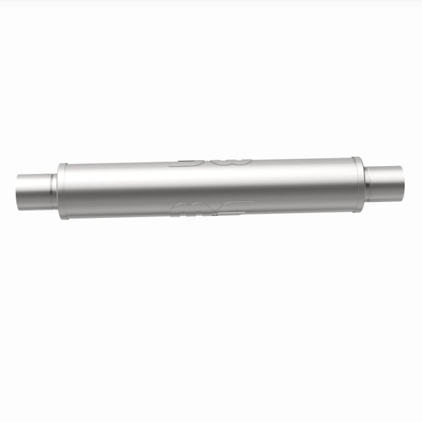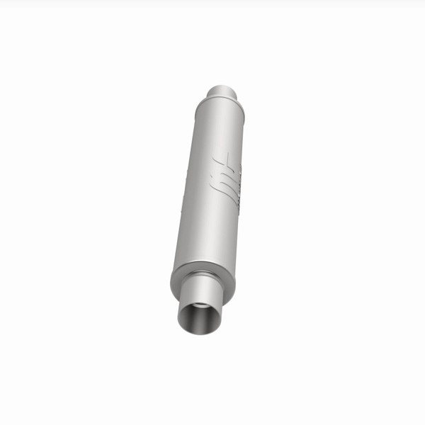 The MagnaFlow 4in. Round Straight-Through Performance Exhaust Muffler 10436 brings our world-famous exhaust sound and dyno-proven performance to your ride in a weight-optimized 4x4x22in. package with a premium satin finish. The straight-through free-flowing design of this round-bodied muffler's reversible, universal 2.5/2.5in. diameter inlet/outlet layout enables versatile installation options to match the spacing requirements of your vehicle. Due to the cutting and welding involved, professional installation is highly recommended. Internally, 10436 utilizes a perforated stainless steel core wrapped in stainless steel mesh and acoustic fiber fill to achieve a powerful, resonant tone. This muffler is made of durable, corrosion resistant stainless steel and produced using cutting-edge CNC precision robotic manufacturing techniques, all backed by MagnaFlow's limited lifetime construction warranty.