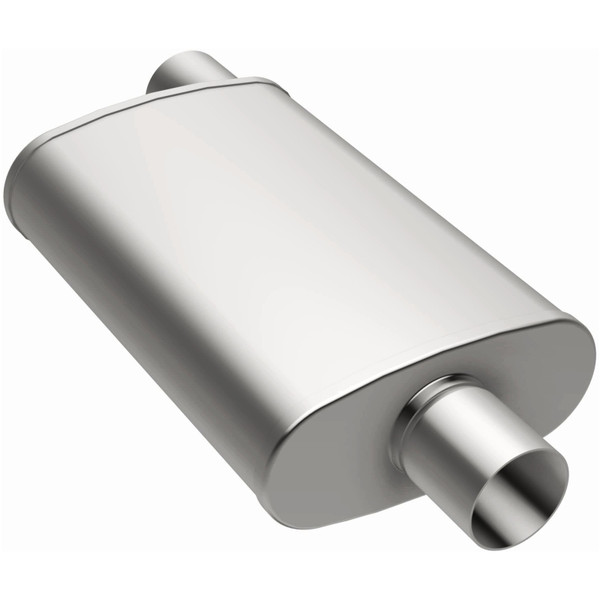 The MagnaFlow 5 X 8in. Oval Straight-Through Performance Exhaust Muffler 12226 is engineered to enhance your ride with a healthy helping of our signature exhaust sound and dyno-proven performance thanks to its free-flowing straight-through perforated stainless steel core wrapped in stainless steel mesh and acoustic fiber fill. The reversible, universal 2.5/2.5in. diameter inlet/outlet Straight-Through layout allows you to install it in whatever orientation and configuration you see fit. However, professional installation is highly recommended. Muffler 12226s weight-optimized 5x8x14in. oval-shaped body features a satin finish that elevates the overall aesthetics of your current exhaust setup. 12226 is made of durable, corrosion resistant stainless steel and produced using cutting-edge CNC precision robotic manufacturing techniques, all backed by MagnaFlow's limited lifetime construction warranty.