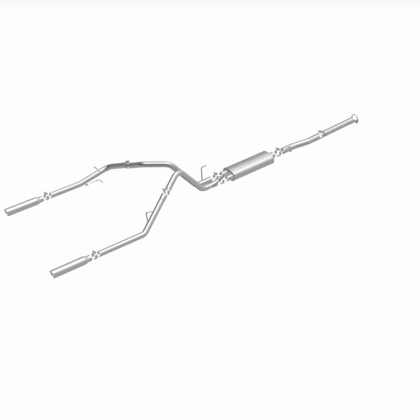 The MagnaFlow 2003 Dodge Ram 1500 Street Series Cat-Back Performance Exhaust System 15788 brings out the personality of your 5.7L 2003-2003 Dodge Ram 1500 with our signature resonant, powerful engine tone and dyno-proven performance. Thanks to its fast-flowing, mandrel bent 3in. main piping and 1 Straight-Through mufflers ending in a Dual Split Rear exit with 3.5in. Polished Clamp-On Single Wall Angle Cut Rolled Edge tips, this Dodge Ram 1500 exhaust kit has the performance chops to match its sporty sound and appearance. Upgrade your ride to the next level with an exhaust that has the pipes to put other Dodge Ram 1500's to shame. With this system your vehicle will be producing Aggressive exterior and Moderate interior sound levels while leaving other cars and trucks feeling envious at every stoplight. Exhaust kit 15788 features a cat-back layout that replaces your ride's stock exhaust components from near the catalytic converter on back. Extensive 3D scanning during development has resulted in a direct-fit design that you can easily install yourself. 15788 is produced using CNC precision robotic manufacturing techniques and is backed by MagnaFlow's 1-year limited finish warranty and limited lifetime construction warranty.
