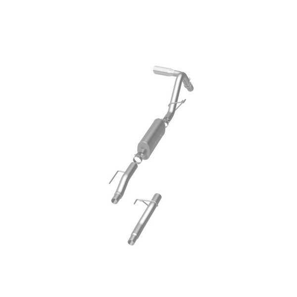 The MagnaFlow Street Series Cat-Back Performance Exhaust System 16518 brings out the personality of your Truck with our signature resonant, powerful engine tone and dyno-proven performance. Thanks to its fast-flowing, mandrel bent 3in. main piping and 1 Straight-Through mufflers ending in a Single Passenger Side Rear exit with 4in. Polished Welded-On Double Wall Angle Cut Rolled Edge tips, this Truck exhaust kit has the performance chops to match its sporty sound and appearance. Upgrade your ride to the next level with an exhaust that has the pipes to put other Truck's to shame. With this system your vehicle will be producing Moderate exterior and Mild interior sound levels while leaving other cars and trucks feeling envious at every stoplight. Exhaust kit 16518 features a cat-back layout that replaces your ride's stock exhaust components from near the catalytic converter on back. Extensive 3D scanning during development has resulted in a direct-fit design that you can easily install yourself. 16518 is produced using CNC precision robotic manufacturing techniques and is backed by MagnaFlow's 1-year limited finish warranty and limited lifetime construction warranty.