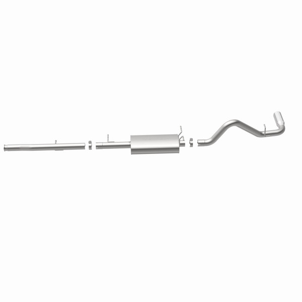 The MagnaFlow Street Series Cat-Back Performance Exhaust System 15564 brings out the personality of your Truck with our signature resonant, powerful engine tone and dyno-proven performance. Thanks to its fast-flowing, mandrel bent 3in. main piping and 1 Straight-Through mufflers ending in a Single Passenger Side Rear exit with 4in. Polished Welded-On Double Wall Angle Cut Rolled Edge tips, this Truck exhaust kit has the performance chops to match its sporty sound and appearance. Upgrade your ride to the next level with an exhaust that has the pipes to put other Truck's to shame. With this system your vehicle will be producing Moderate exterior and Mild interior sound levels while leaving other cars and trucks feeling envious at every stoplight. Exhaust kit 15564 features a cat-back layout that replaces your ride's stock exhaust components from near the catalytic converter on back. Extensive 3D scanning during development has resulted in a direct-fit design that you can easily install yourself. 15564 is produced using CNC precision robotic manufacturing techniques and is backed by MagnaFlow's 1-year limited finish warranty and limited lifetime construction warranty.