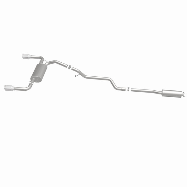 The MagnaFlow 2013-2019 Ford Escape Street Series Cat-Back Performance Exhaust System 15203 brings out the personality of your 1.6L, 2.0L 2013-2019 Ford Escape with our signature resonant, powerful engine tone and dyno-proven performance. Thanks to its fast-flowing, mandrel bent 2.25in. main piping and 2 Straight-Through mufflers ending in a Dual Split Rear exit with 4in. Polished Welded-On Double Wall Angle Cut Rolled Edge tips, this Ford Escape exhaust kit has the performance chops to match its sporty sound and appearance. Upgrade your ride to the next level with an exhaust that has the pipes to put other Ford Escape's to shame. With this system your vehicle will be producing Moderate exterior and Mild interior sound levels while leaving other cars and trucks feeling envious at every stoplight. Exhaust kit 15203 features a cat-back layout that replaces your ride's stock exhaust components from near the catalytic converter on back. Extensive 3D scanning during development has resulted in a direct-fit design that you can easily install yourself. 15203 is produced using CNC precision robotic manufacturing techniques and is backed by MagnaFlow's 1-year limited finish warranty and limited lifetime construction warranty.