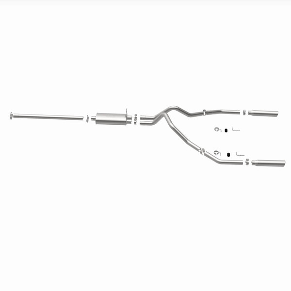 The MagnaFlow Street Series Cat-Back Performance Exhaust System 15749 brings out the personality of your 4.6L, 5.4L 1997-2004 Ford with our signature resonant, powerful engine tone and dyno-proven performance. Thanks to its fast-flowing, mandrel bent 2.5in. main piping and 1 Straight-Through mufflers ending in a Dual Split Rear exit with 3.5in. Polished Clamp-On Single Wall Angle Cut Rolled Edge tips, this Ford exhaust kit has the performance chops to match its sporty sound and appearance. Upgrade your ride to the next level with an exhaust that has the pipes to put other Ford's to shame. With this system your vehicle will be producing Aggressive exterior and Moderate interior sound levels while leaving other cars and trucks feeling envious at every stoplight. Exhaust kit 15749 features a cat-back layout that replaces your ride's stock exhaust components from near the catalytic converter on back. Extensive 3D scanning during development has resulted in a direct-fit design that you can easily install yourself. 15749 is produced using CNC precision robotic manufacturing techniques and is backed by MagnaFlow's 1-year limited finish warranty and limited lifetime construction warranty.
